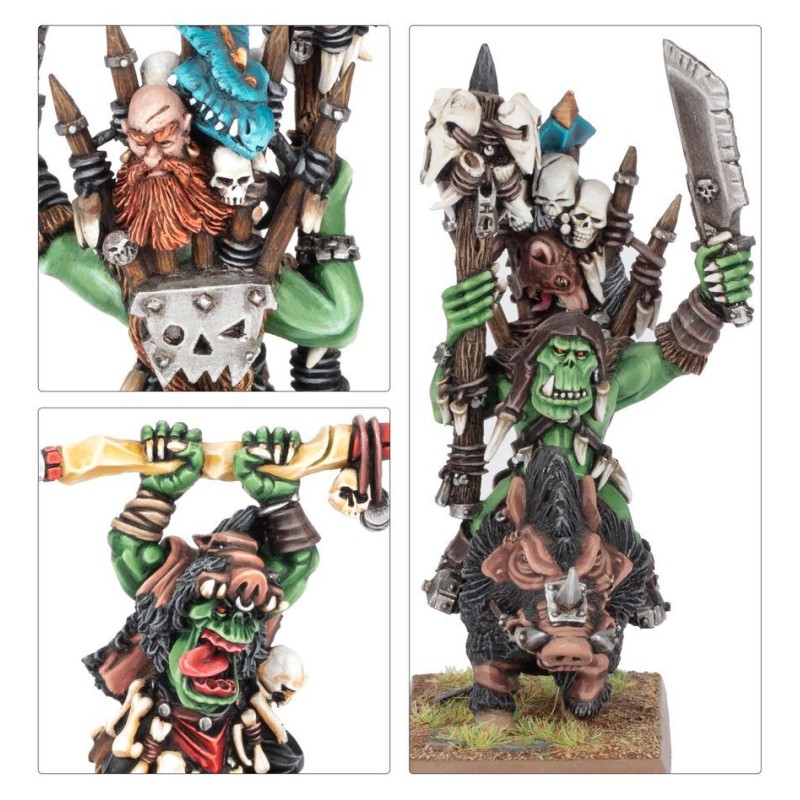 Ce kit en métal permet d'assembler deux Chamanes Orques, un à pied et un autre sur le dos d'un Sanglier eud'Guerre, mais tous deux sont de puissants sorciers pour vos Tribus d'Orques & Gobelins. Le Chamane monté a un choix de deux têtes différentes. Si vous cherchez un bon moyen de rendre vos charges plus mortelles encore, les Chamanes sont une option infaillible, et la personnalité qu'ils ajoutent en fait une très bonne manière de mettre un peu de sel dans votre collection.