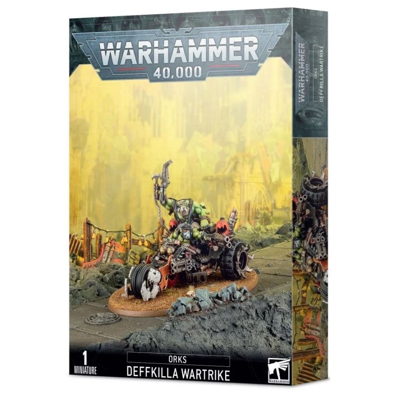 Ce kit plastique contient les composants nécessaires pour assembler un Deffkilla Wartrike. Avec son équipage de 2 Orks à la carrure massive – un pilote et un Speedboss – il a un châssis allongé et surbaissé, et un moteur volumineux logé entre les roues arrière barbelées pour optimiser le couple (et maximiser les jets de flammes). Les deux Orks regardent vers la gauche, vers avisant quelque malheureux ennemi – le pilote brandit un fuzi doub’kiboum plus long que son bras, et le Speedboss agite une pince kichop' prête à se saisir de ce qui se présente. À l'arrière, un Grot touilleur de karburant est prêt à rajouter dans le réservoir divers produits chimiques dangereux, et de chaque côté, les entrées d'air sont faites pour évoquer une mâchoire d'Ork.