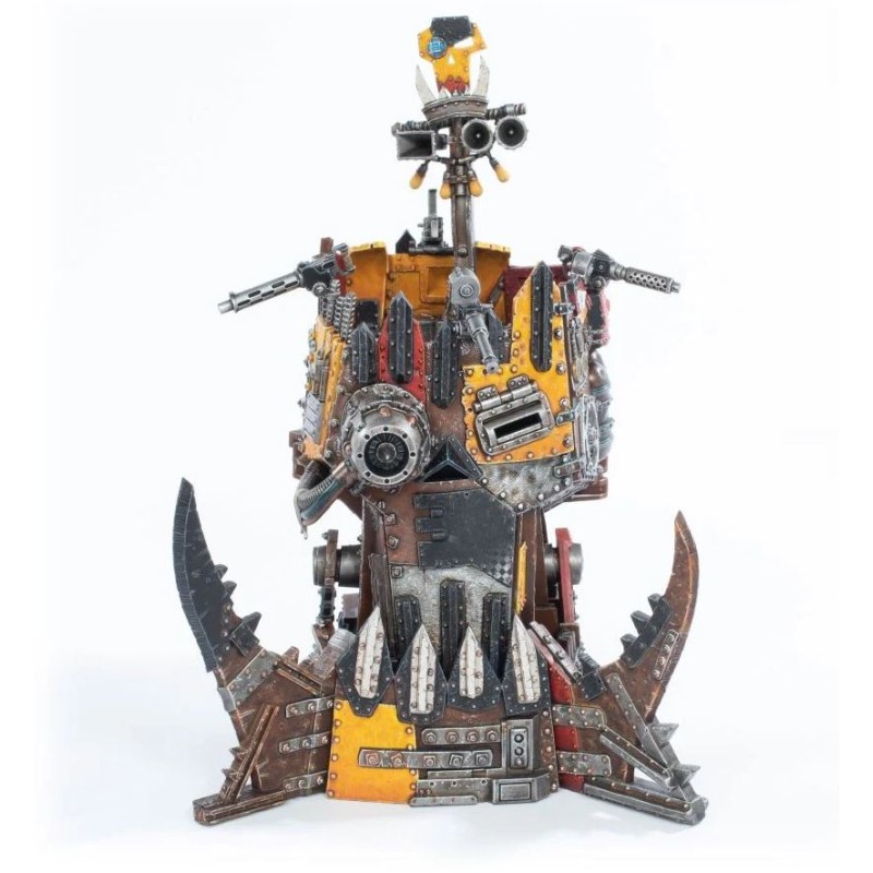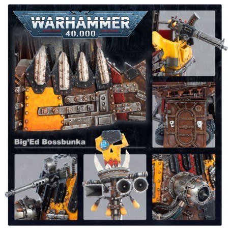 Construit dans la tête d'un Gargant Ork réaffectée, le Gro'bunker offre à votre Boss de Guerre un bon moyen de diriger les Boyz chahuteurs qu'il a sous son commandement. Si leur comportement laisse à désirer, ou si des audacieux tentent de renverser le Boss, ils se prendront une salve du gros fling' du Gro'bunker d'Boss, voire du Regard de Gork – une arme construite à partir d'un réacteur fichée dans un œil du Gargant.