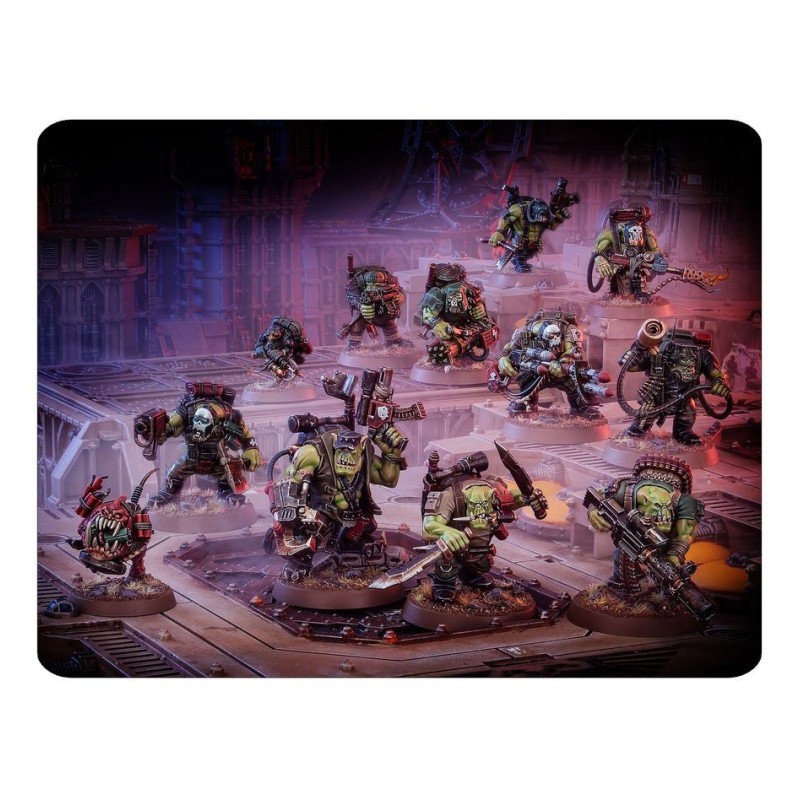 Ce kit est composé de 150 éléments en plastique, de 10x Socles Ronds Citadel de 32mm, de 2x Socles Ronds Citadel de 25mm et de 1x Planche de Décalcos Orks comprenant 438 décalcos de grande qualité pour décorer vos figurines.