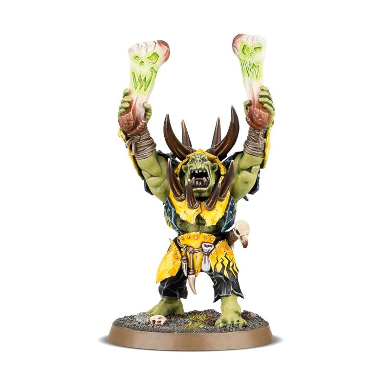 Ce kit plastique contient toutes les pièces nécessaires pour assembler un Warchanter, celui qui assène le son de la Waaagh!. Muni d'un gourdin de Gork dans une main et d'une matrak' de Mork dans l'autre, il porte une armure, des cornes et des glyphes, plus un kikoup' à la ceinture. Il y a 14 composants, et un socle rond Citadel de 40mm.