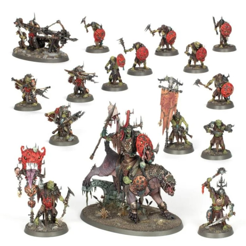 Si vous souhaitez employer des ruses discrètes et faire preuve d'une violence écœurante dans les Royaumes Mortels, cette boîte est le point de départ idéal pour une armée de Clans Guerriers Orruks, ou une excellente manière d'agrandir votre collection de Kruelboyz, tout en faisant des économies par rapport à un achat des kits au détail. Cette boîte contient un Bosskitu' sur Bruxodonte, ainsi qu'un Rotétendard cracheur de poison et une puissante Empaleuse. C'est une armée entière en une boîte, prête à surgir des marais dans les parties de Warhammer Age of Sigmar.