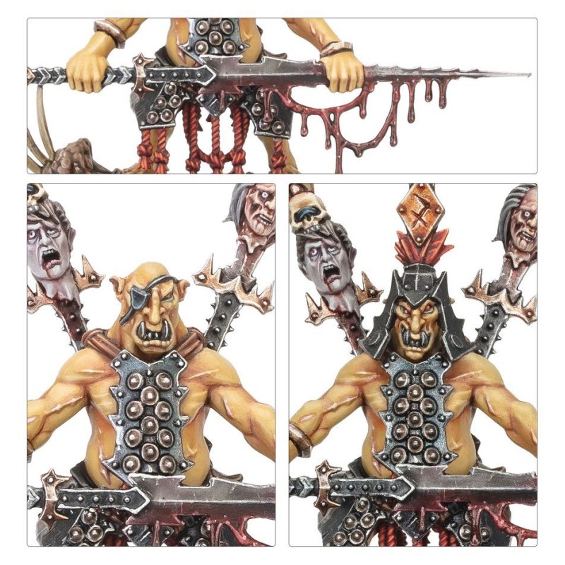 Description du produitLes Boss Égorgeurs commandent les kompagnies de Hobgrots qui arpentent les royaumes en quête de pillages. Ils sont non seulement les représentants les plus physiquement imposants et les plus cruels de leur engeance, mais également les plus rusés. Ce sont tous des arnaqueurs de première, et ils n'hésitent par à massacrer quiconque se tient entre eux et le fruit de leurs rapines.