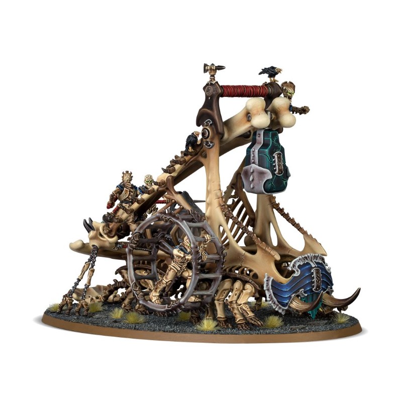 Choisissez à chaque tir de cette effroyable catapulte entre les crânes nécrotiques, le chaudron de tourment ou la stèle maudite. Cette dernière est d'autant plus dangereuse que la Mortek Crawler est endommagée, car le pouvoir de sa vengeance grandit. On peut monter le bras de la catapulte en position relevée, comme si elle tirait à l'instant, ou en position abaissée de rechargement – dans les deux cas, on peut s'abstenir de coller le bras afin qu'il soit libre de pivoter.