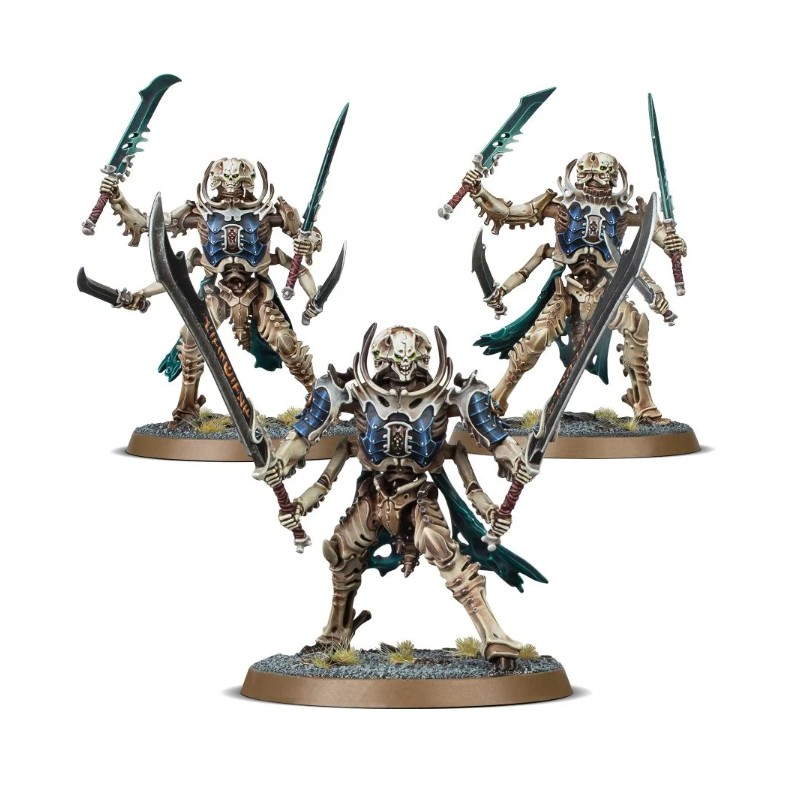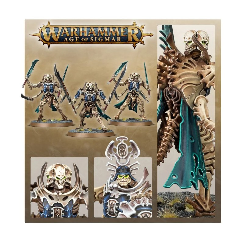 Description du produitHorreurs à quatre bras nanties de l'essence collective de maîtres duellistes, les Necropolis Stalkers bondissent et virevoltent dans la mêlée avec une célérité terrifiante, changeant de posture et de forme en un éclair tout en démembrant leurs adversaires.