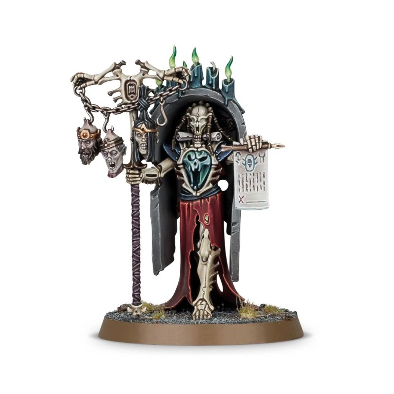 Description du produitC'est à Vokmortian qu'il appartient de superviser la moisson d'os des légions d'Ossiarchs, et il accomplit sa tâche avec une précision calculée et impitoyable. Quiconque défie la volonté du Grand Nécromancien est promptement abattu à coups de foudre nécromantique flétrisseuse de chair.