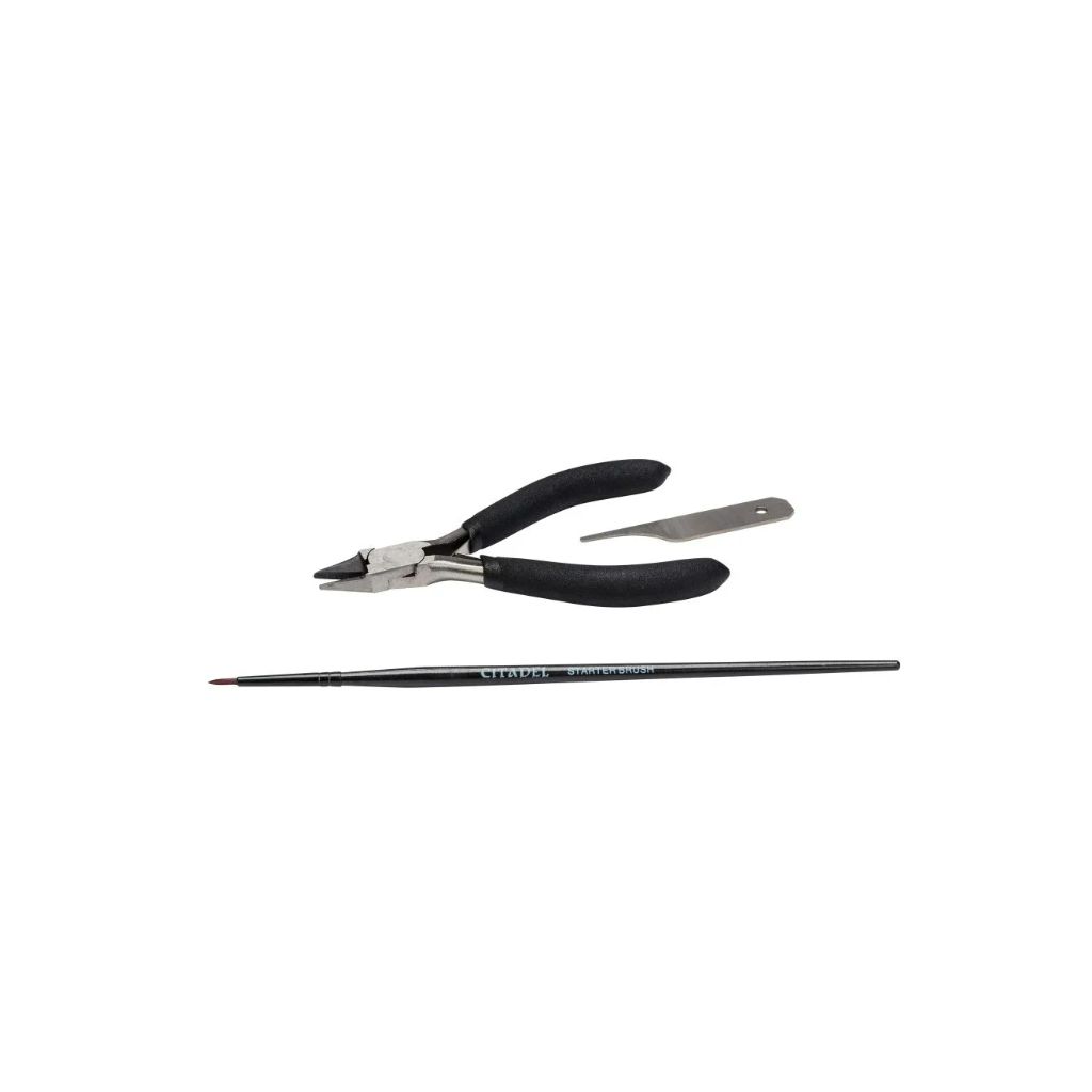 Description du produitAssembler et peindre des figurines Citadel est une manière amusante et gratifiante de se lancer dans le hobby Warhammer, et il n'en devient que plus satisfaisant au fil du temps. Vous aurez besoin de quelques outils et d'un set de peintures pour commencer, et cette boîte contient la base de votre outillage à hobby Warhammer.