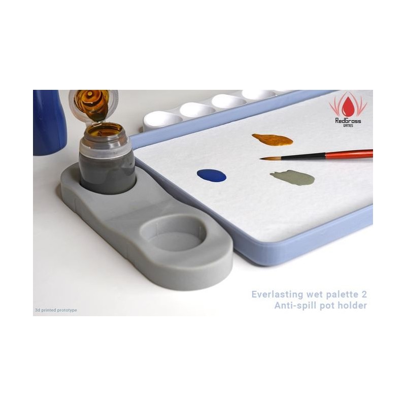 Notre nouveau support de pot anti-déversement , avec notre nouveau système de verrouillage coulissant pour les accessoires, permet d'ajouter encore plus facilement des accessoires en toute sécurité à votre palette. Le support de pot anti-déversement est idéal pour éviter de renverser vos teintes et vos encres !