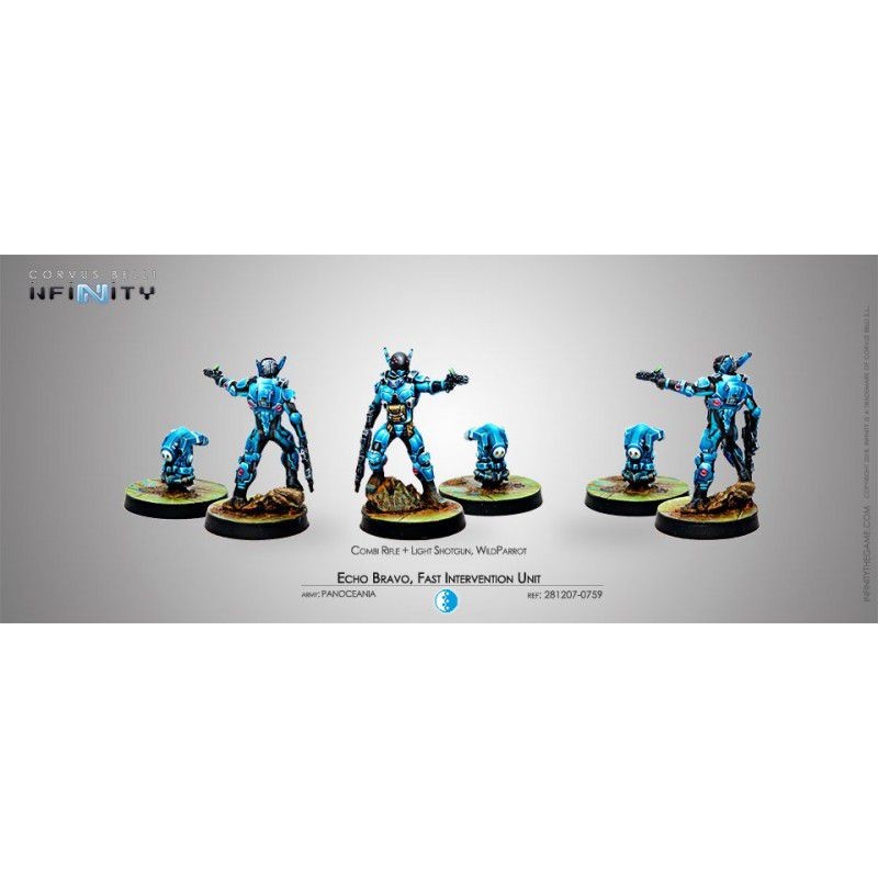 Leur travail consiste à se rendre à un endroit critique pour établir une position, contenir une situation ou repousser des ennemis ; mais le truc, c'est qu'être les premiers sur le terrain, c'est ne recevoir aucun soutien. L'unité Echo-Bravo est la pointe du fouet panocéanique : rapide, fort et douloureux comme l'enfer. Le profil opérationnel de ces mangeurs de serpents endurcis les place le plus souvent en position de désavantage numérique, dans des scénarios où la seule défense est une attaque totale pour contrecarrer l'ennemi par la violence pure.