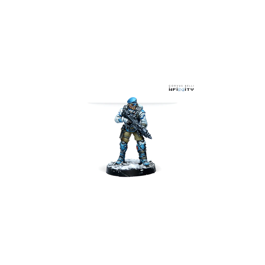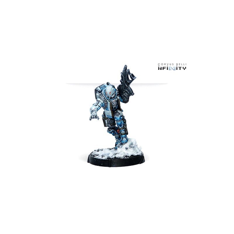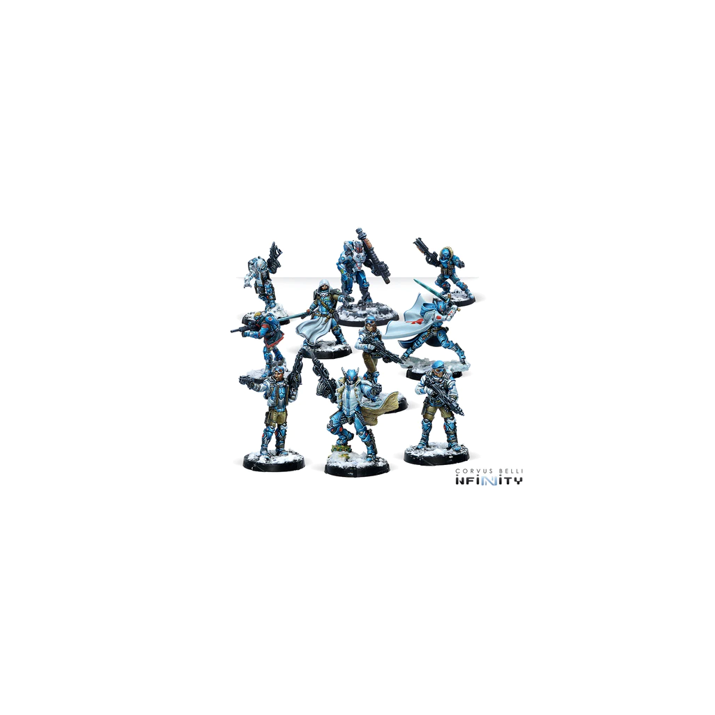 Contient 10 figurines en métal pour le jeu Infinity, ainsi que leurs socles. Les figurines sont à assembler et à peindre.