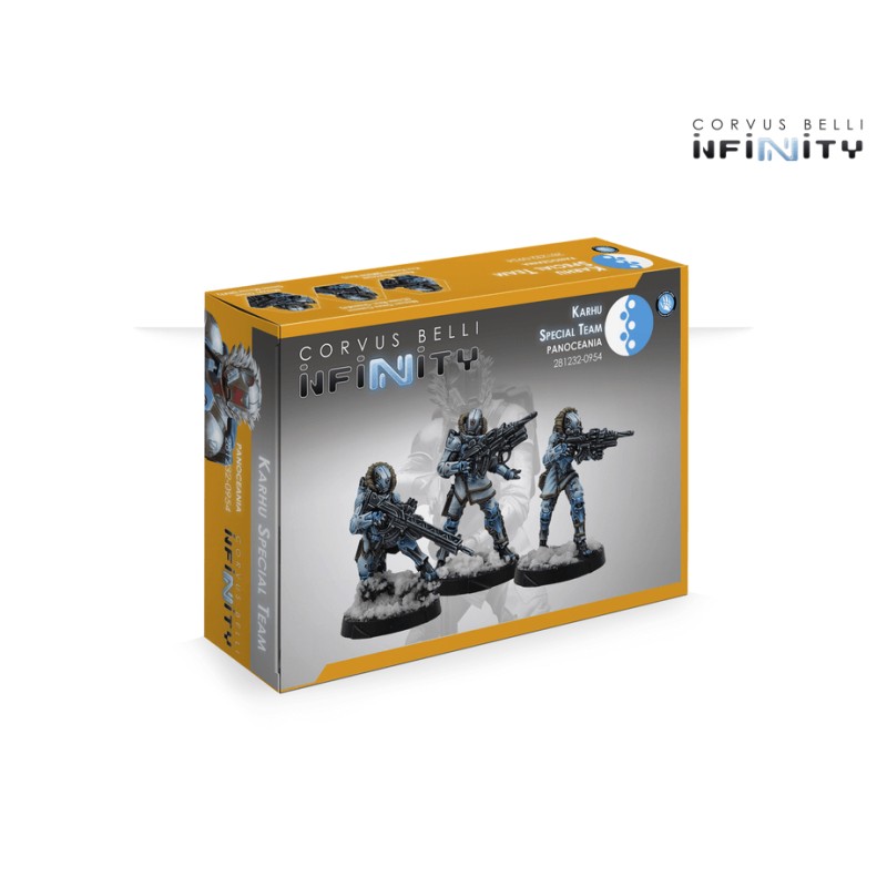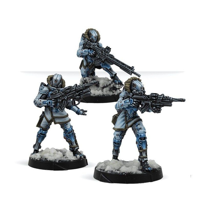 Cette boîte contient 3 figurines : 1 ingénieur Karhu avec fusil MULTI, 1 Karhu avec Feuerbach et 1 Karhu avec fusil MULTI. Une boîte qui ajoutera de la polyvalence aux listes d'armée que vous pouvez créer avec votre PanOceania Action Pack et qui vous permettra de créer des Fireteams dans l'armée sectorielle Svalarheima WinterFor.