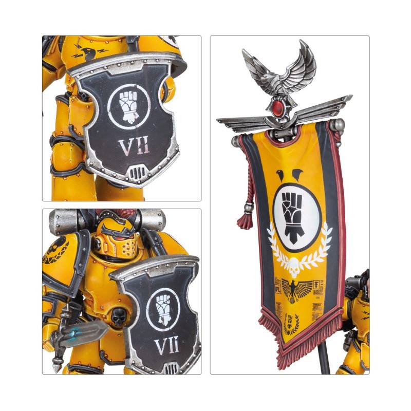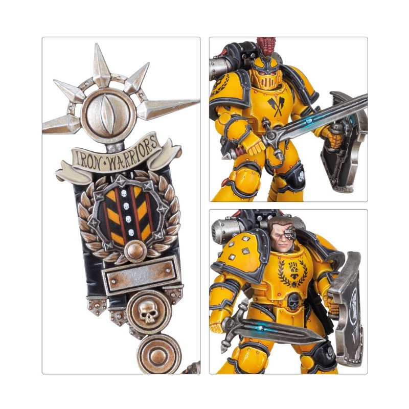 Description du produitLes Escouades d'État-major de Légion sont constituées des vétérans les plus fiables des Legiones Astartes. Ces guerriers élus ont accès au meilleur équipement de leur Légion, comme l'armure d'artificier MKIII ""de Fer"", qui fournit une protection légère avancée, et ils accompagnent leurs commandants au combat pour leur servir de gardes du corps et d'adjudants. Ils portent également les grands étendards de la Légion pour signaler les points de ralliement sur le champ de bataille pour les troupes de Space Marines.