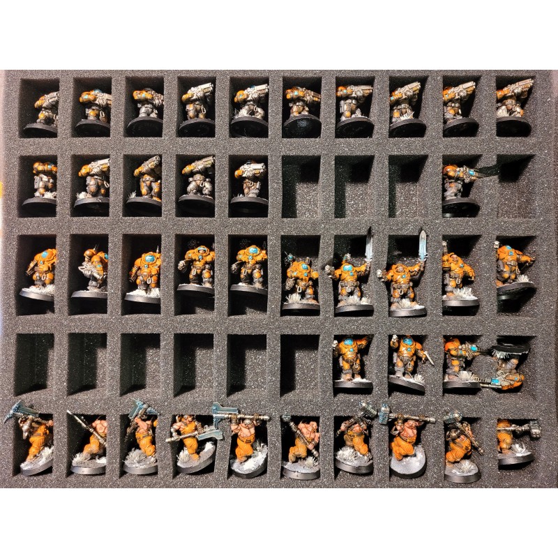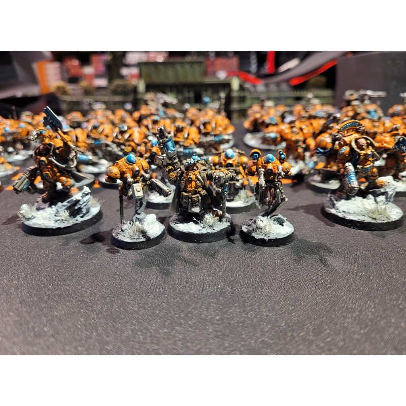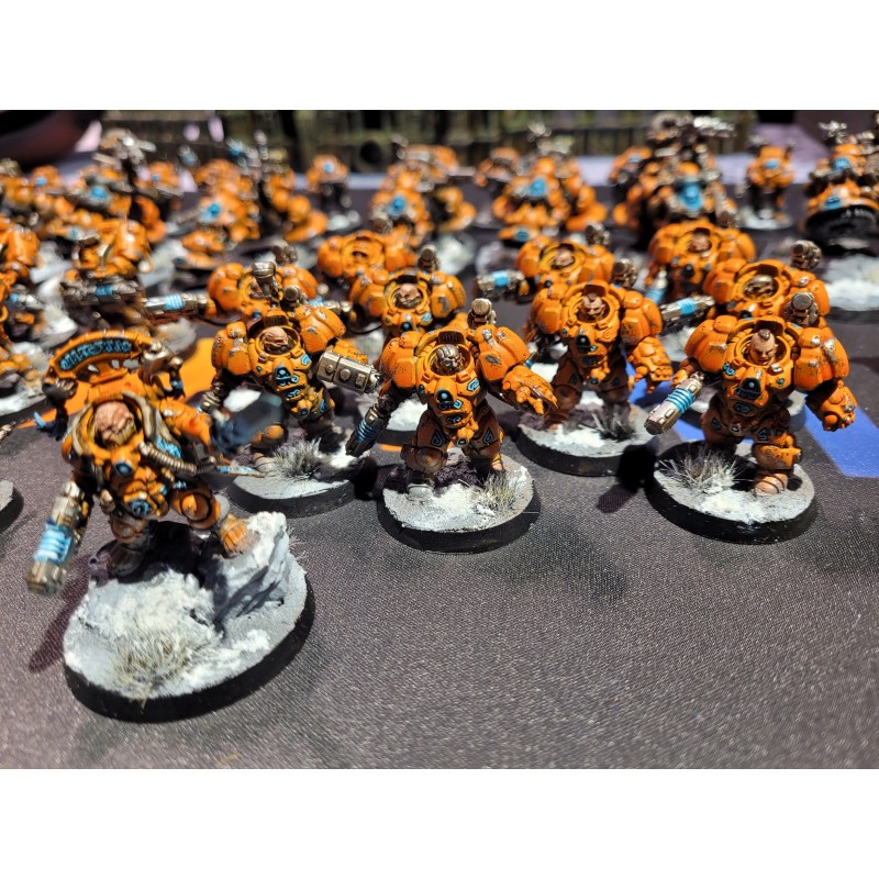 == Détachement principal : Leagues of Votann Environ 2000pts == Personnages 1 : Kâhl Personnages 2 : Kâhl Personnages 3 : 5 Maître-Fer Brôkhyr --- Assistant Cognat de Fer --- 3x E-COG Ligne 1 : 10x Guerriers Âtrekogs --- Theyn Ligne 2 : 10x Guerriers Âtrekogs --- Theyn Ligne 3 : 10x Guerriers Âtrekogs --- Theyn Infanterie 1 : 5x Berserks Cthoniens Infanterie 2 : 5x Berserks Cthoniens Infanterie 3 : 10x Âtregardes Einhyrs --- Hesyr Infanterie 4 : 3x Tonnekogs Brôkhyr avec 3x Canon éclateur à gravitons Infanterie 5 : 3x Tonnekogs Brôkhyr avec 3x Canon éclateur à gravitons Montés 1 : 3x Pionniers Hernkogs Montés 2 : 3x Pionniers Hernkogs Montés 3 : 3x Pionniers Hernkogs Véhicules 1 : Forteresse Mobile Hekaton Véhicules 2 : Forteresse Mobile Hekaton
