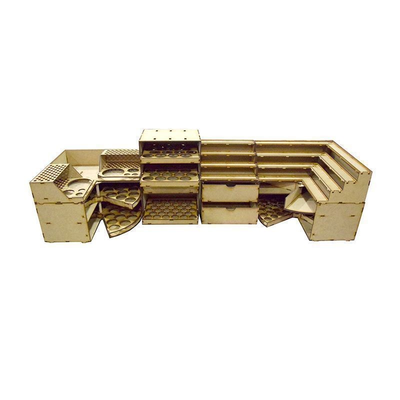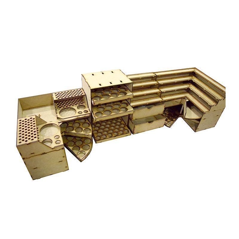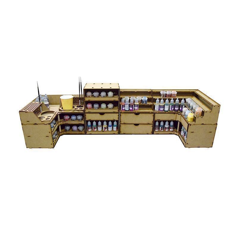 - 1 module avec deux tiroirs de 20cm, chacun pouvant contenir 16 pots de peinture de type Citadel