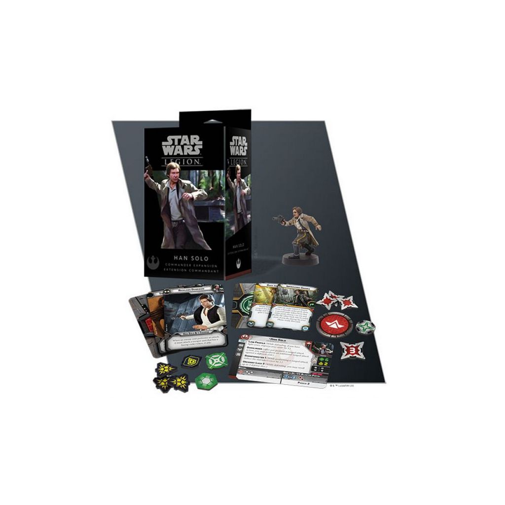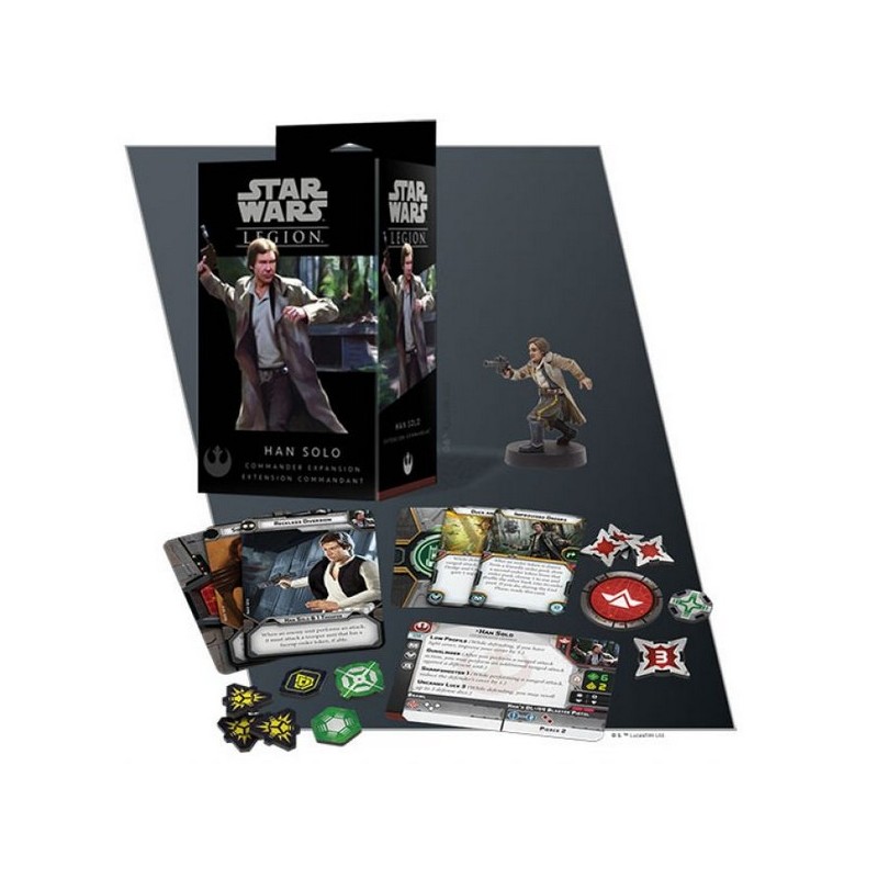Dans l'extension Han Solo Commander, les chefs rebelles trouveront tout ce dont ils ont besoin pour ajouter Han Solo comme commandant à leurs armées de Star Wars : Legion. Une seule figurine non peinte et facile à assembler représente Han Solo avec son pistolet blaster lourd DL-44 dégainé et prêt à tirer. Trois nouvelles cartes d'amélioration vous donnent les outils nécessaires pour équiper Han Solo ou une autre unité pour la bataille, et trois cartes de commandement vous permettent d'apporter l'audace et la bravade caractéristiques de Han sur le terrain.