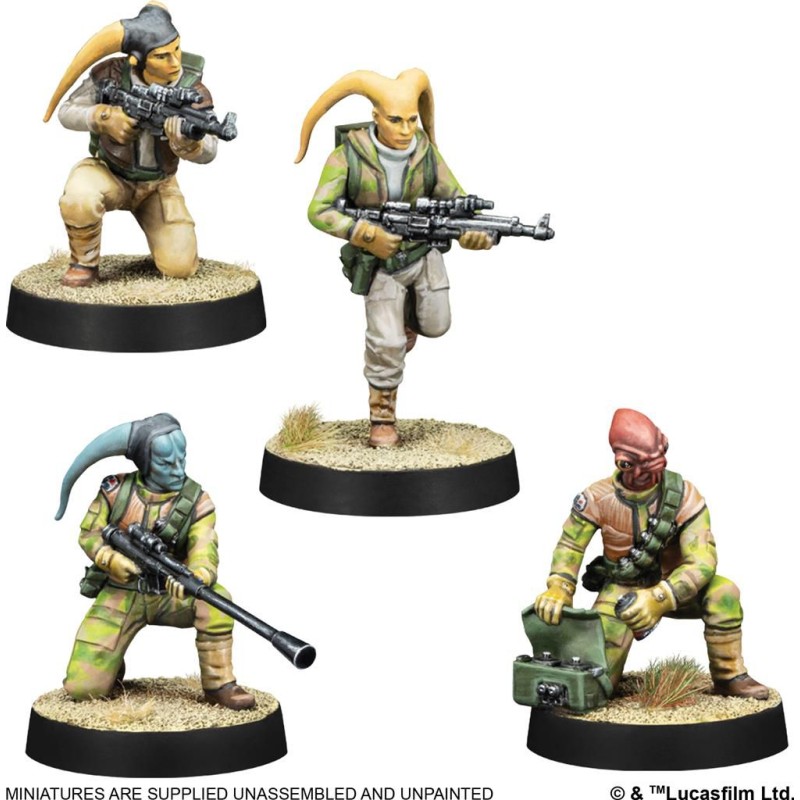 L’extension d’unité Commandos Rebelles contient 7 figurines de Rebelles, dont 1 Chef Commando Rebelle, 4 Soldats Commando Rebelle et 2 Commandos Rebelles avec des armes lourdes, ainsi que toutes les cartes dont vous aurez besoin pour jouer.