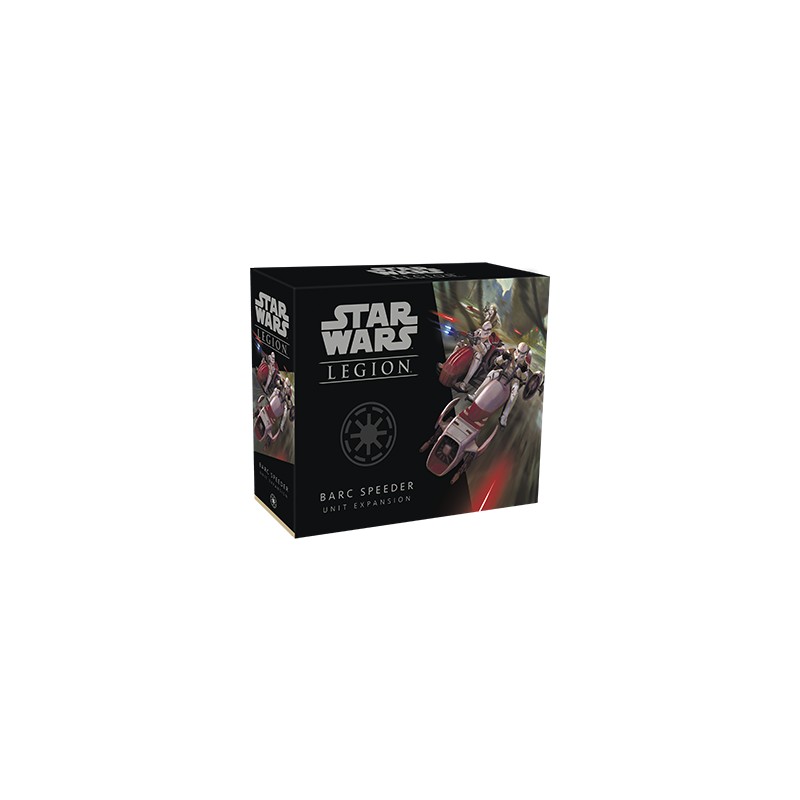 Dans l'extension d'unité de speeder BARC, vous trouverez une figurine de speeder BARC non peinte, finement sculptée, représentant des pilotes en armure de pilote de speeder BARC. Si vous le souhaitez, cette figurine peut être équipée d'un side-car avec un blaster ionique M-45 intégré ou un blaster moyen Mark II. De même, un Clone Trooper Phase I peut tirer un lance-roquettes RPS-6 depuis le sidecar. Cette extension comprend également une carte d'unité et un assortiment de six cartes d'amélioration vous invitant à équiper votre speeder en fonction de votre plan de bataille personnel.