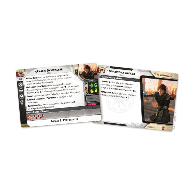 Cette extension comprend tout ce dont vous avez besoin pour qu'Anakin Skywalker prenne le commandement de vos armées de la République. La figurine en plastique dur, magnifiquement détaillée et non peinte, peut être assemblée dans l'une des deux poses proposées, tandis que ses trois cartes de commandement signature lui permettent d'exploiter encore plus de puissance au fil de la bataille. Enfin, six cartes d'amélioration vous invitent à explorer le plein potentiel de Skywalker, tandis que sa nouvelle carte de défaut offre aux ennemis une faiblesse à exploiter.