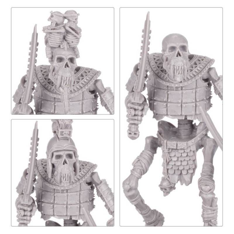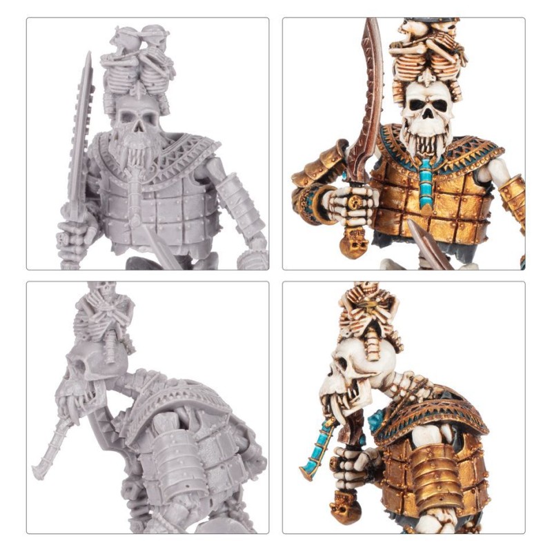 Ce kit en résine permet d'assembler un Colosse Nécrolithe, un béhémoth de destruction conçu par les Rois des Tombes de Khemri. Cette construction géante est armée de deux immenses khopeshs et est protégée par une armure d'écaille ornementée, ce qui lui permet de lancer des charges dévastatrices. Ses bras et sa tête peuvent être positionnés individuellement, et elle est fourni avec un choix de trois crânes différents: un nu, un portant une barbe postiche et une coiffe squelettique et une dotée d'un heaume à cimier.