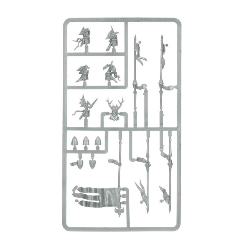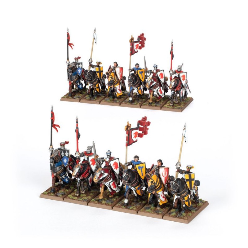 Ce kit plastique permet d'assembler 12 Chevaliers du Royaume ou Chevaliers Errants montés, la fière cavalerie lourde du Royaume de Bretonnie. Chaque Chevalier est un noble guerrier maniant une lance tout en portant une épée à sa ceinture. Ils sont protégés par une armure lourde et un bouclier, et leurs destriers sont engoncés dans des caparaçons flottants. Ce kit fournit toutes les améliorations d'état-major dont vous avez besoin (musiciens, porte-étendard et champions), que vous souhaitiez déployer vos Chevaliers en une lance de 12 figurines ou en deux de six.