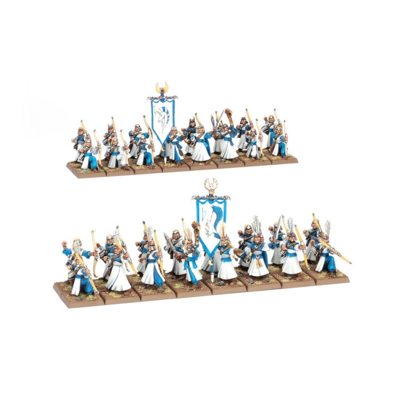 Ces figurines sont aussi disponibles dans la boîte de Bataillon des Royaumes Hauts Elfes.
