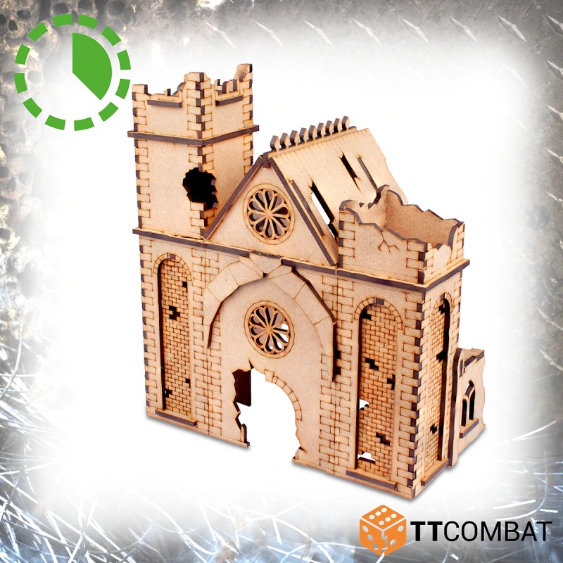 L'abbaye du couvent en ruine est fabriquée en MDF de 3 mm, facile à assembler et très belle sur la table. C'est un décor parfait pour les jeux de guerre de science-fiction 28-35 mm.