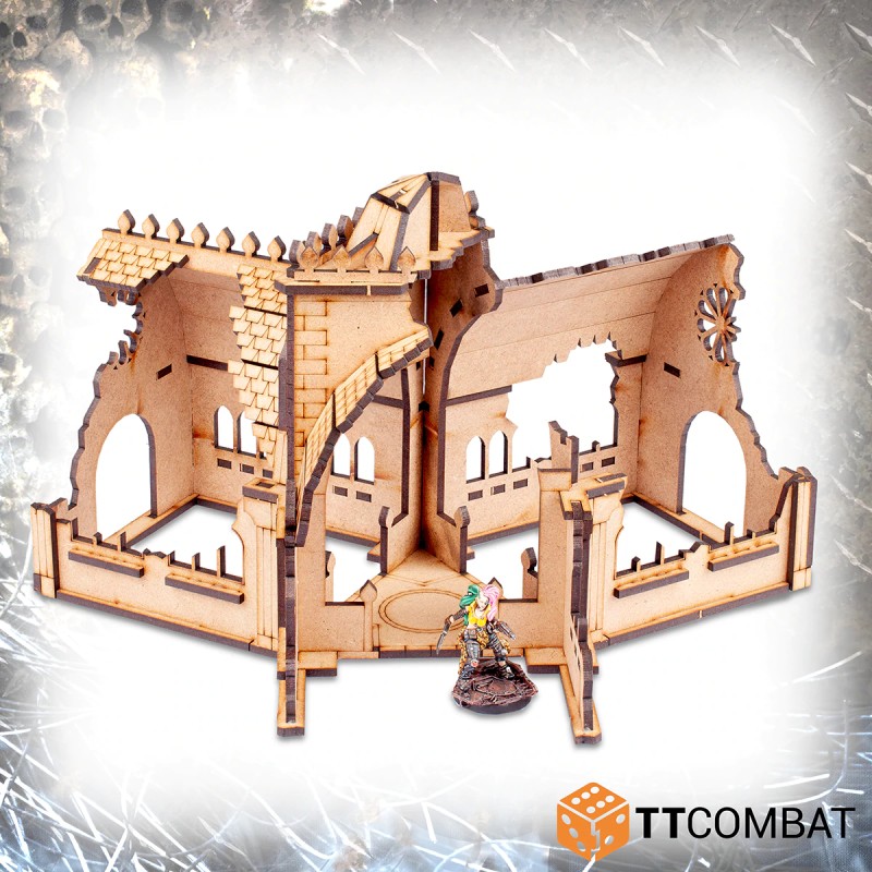 L'intersection du couvent en ruine est fabriquée en MDF de 3 mm, facile à assembler et très esthétique sur la table. Un décor parfait pour les jeux de science-fiction 28-35 mm.