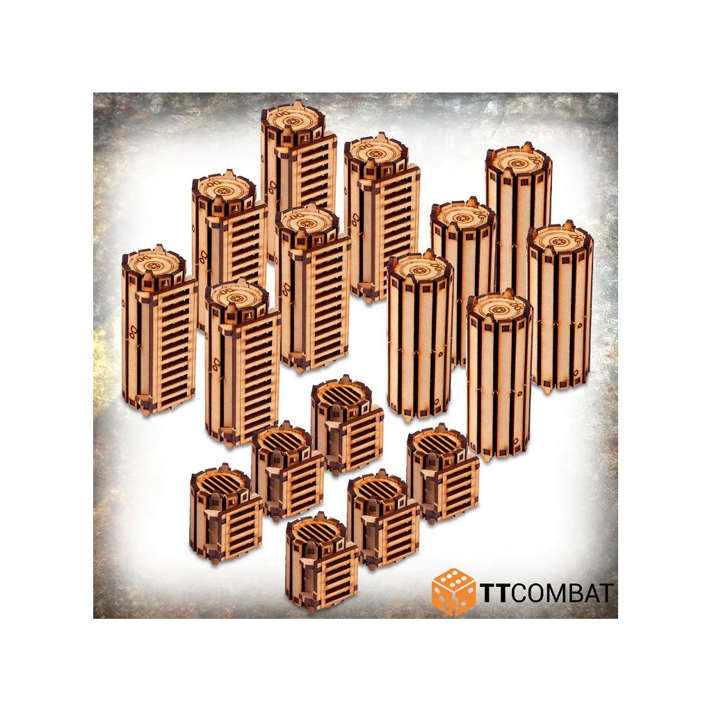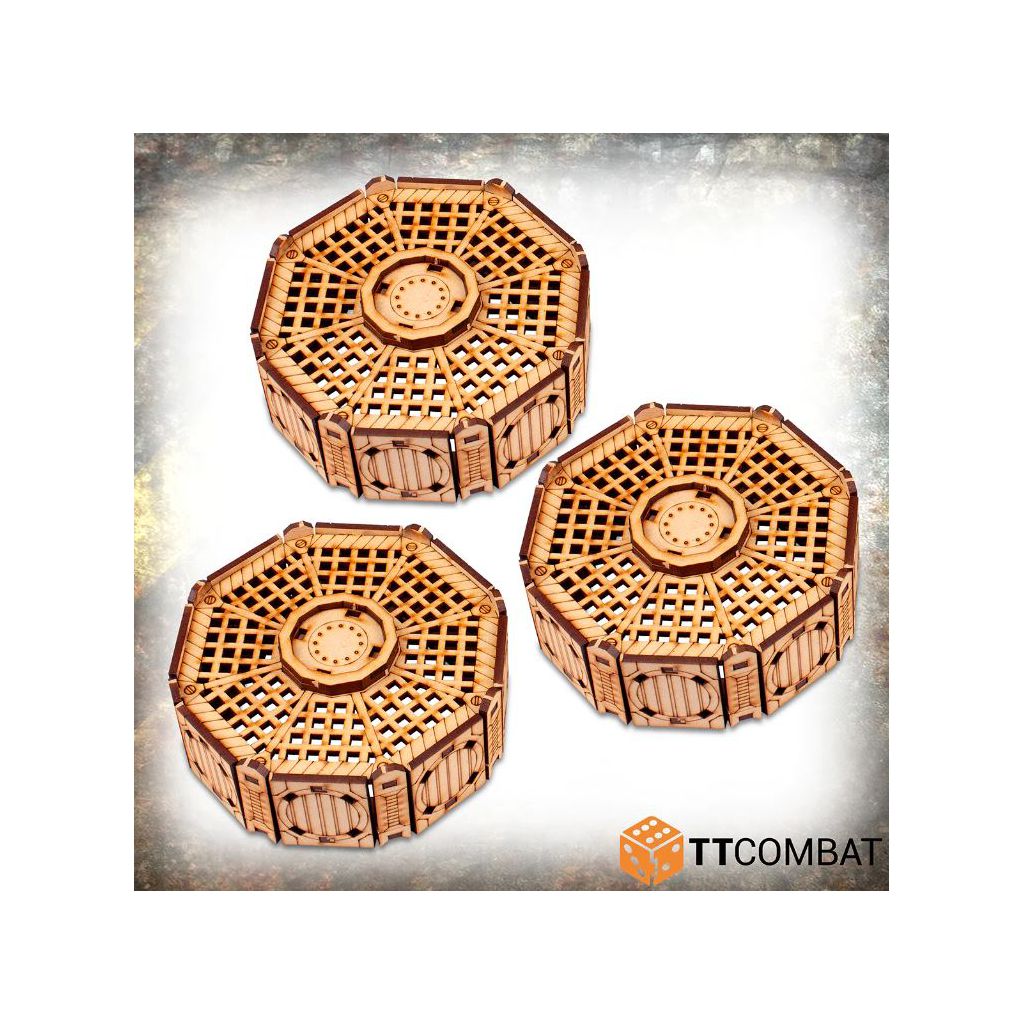 Ce kit est fait de MDF 3mm et a été conçu pour des jeux tentaculaires de guerre des gangs 28-32mm dans une jungle dense de machines.