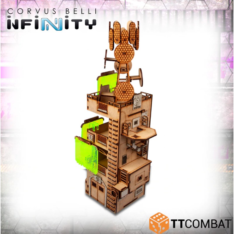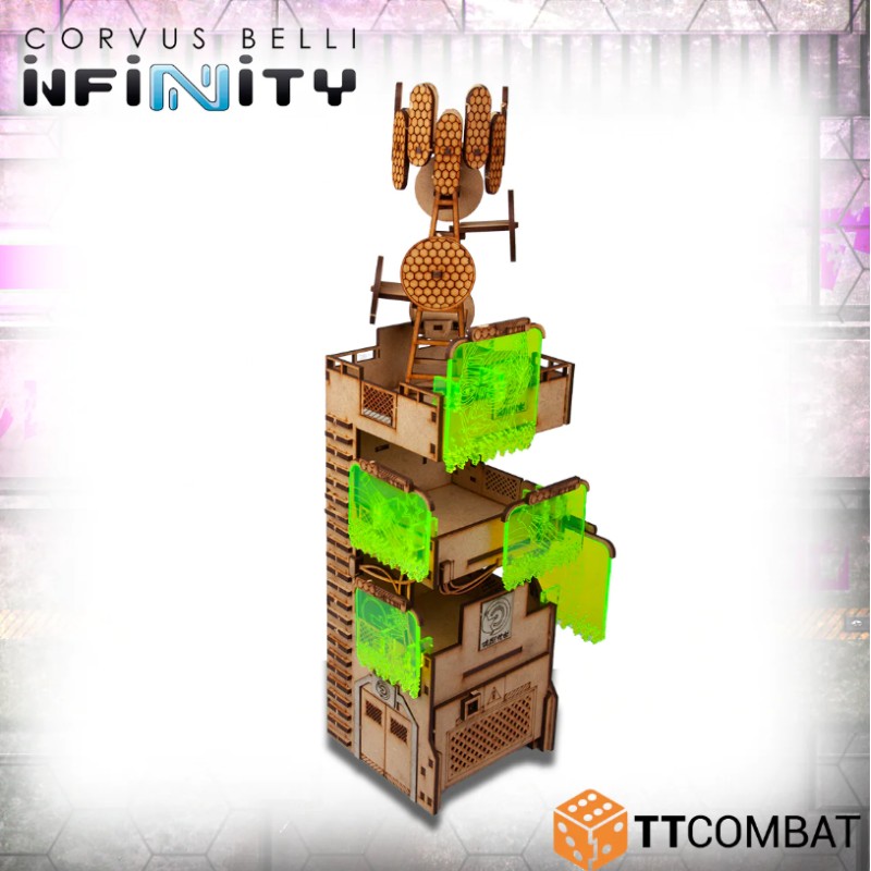La tour de communication est fabriquée à partir de MDF de 3 mm, de carton gris de 1 mm et d'acrylique de 3 mm. C'est un excellent élément de décor à utiliser sur la table pour Infinity et qui fonctionnera parfaitement avec d'autres jeux de 28-32mm.