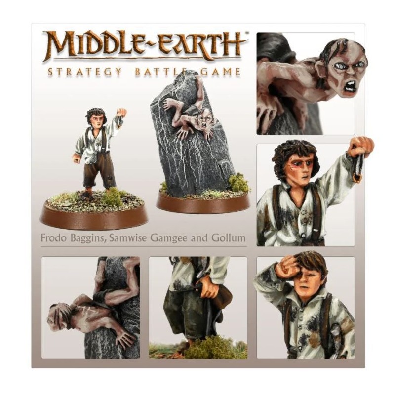 Ce sont les trois personnages cruciaux du voyage de l'Anneau jusqu'au Mordor, car les actes de Frodo, Sam et Sméagol ont pesé sur le sort de tous. Ce trio de figurines les représente vers la fin de la quête de Frodo, quand l'épuisement physique et mental d'un tel fardeau se fait sentir.