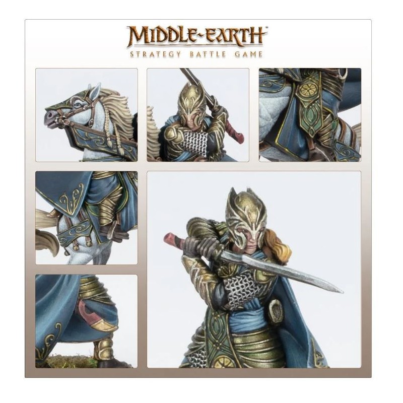 L'ensemble se compose de 13 éléments moulés en résine de haute qualité avec lesquels vous pouvez construire deux figurines en plusieurs parties et à une seule position - Glorfindel monté, et à pied. Le kit est fourni avec 1 base ronde à trou hexagonal de 40 mm et 1 base ronde de 25 mm. Ces figurines nécessitent un assemblage et ne sont pas peintes - nous vous recommandons d'utiliser les peintures Citadel Colour.
