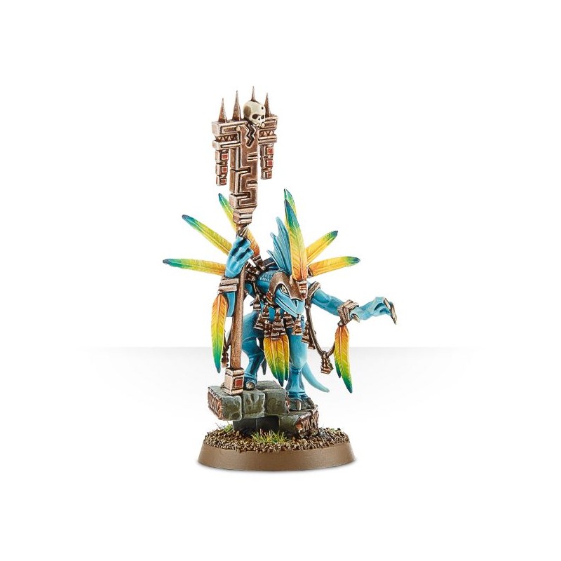 Ce kit plastique se compose de dix pièces, permettant d'assembler un Skink Starpriest, muni d'un sceptre de cérémonie et armé d'une dague de pierre d'étoile. Fourni avec un socle rond Citadel de 25mm.