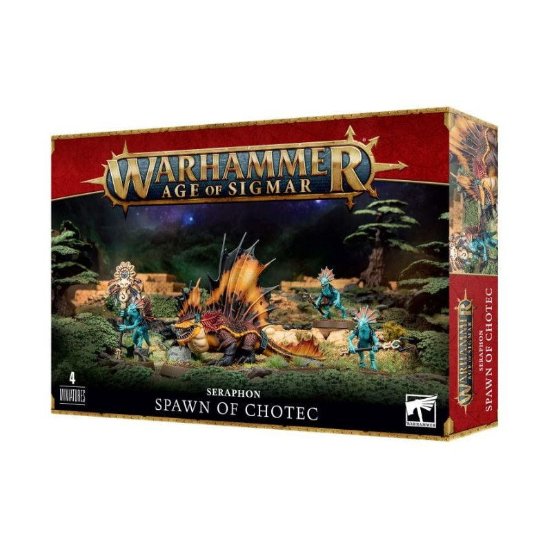 Description du produitLes Rejetons de Chotec sont d'énormes salamandres dont les Séraphons pensent qu'elles sont les enfants de leur dieu solaire. Dirigées au combat par des dresseurs skinks bénis par le soleil, ces créatures prédatrices sont capables de cracher de l'acide inflammable et visqueux ou des torrents mortels de flammes liquides. Les victimes qui survivent à ces expectorations flamboyantes finissent digérées vivantes par les sucs caustiques restants.