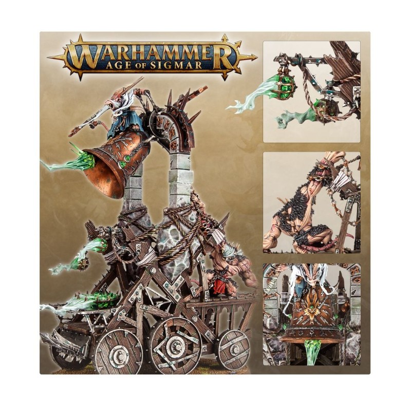 Ce kit plastique contient cinquante-quatre pièces permettant d'assembler une Screaming Bell ou une Plague Furnace Skaven, et inclut un socle ovale Citadel de 120mm.