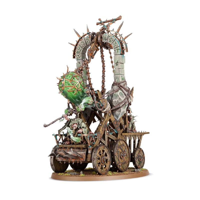 Description du produitVrombissant sourdement aux accents de la maladie et de la pourriture, l'encensoir colossal de la Plague Furnace se balance inexorablement. Il émet des nuages asphyxiants de miasmes immondes, qui recouvrent les terres qu'il occupe sous des vrilles de brume ignoble, aussi repoussante qu'envahissante et porteuse de putréfaction. Le Plague Priest couinant perché sur la Plague Furnace la guide au combat tout en répandant ses bénédictions nauséeuses à ses ouailles impures.