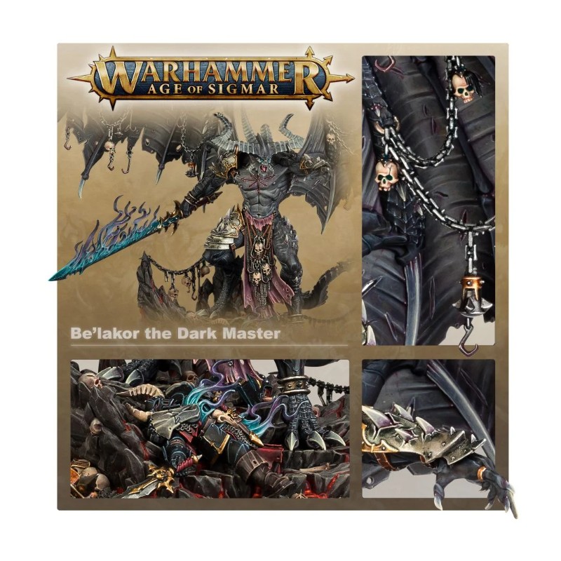 Comme il sied au plus grand des Princes Démons, Be'lakor est comme le suggère son apparence une véritable créature de cauchemar. Surnaturellement doué dans les arts martiaux et magiques, ce sujet imposant fait une pièce centrale toute trouvée pour une armée du Chaos, doublé d'un véritable boulet de démolition pour balayer vos ennemis. Le plus impressionnant c'est que cette figurine incroyable mesure 170mm de la base du socle au haut des ailes.