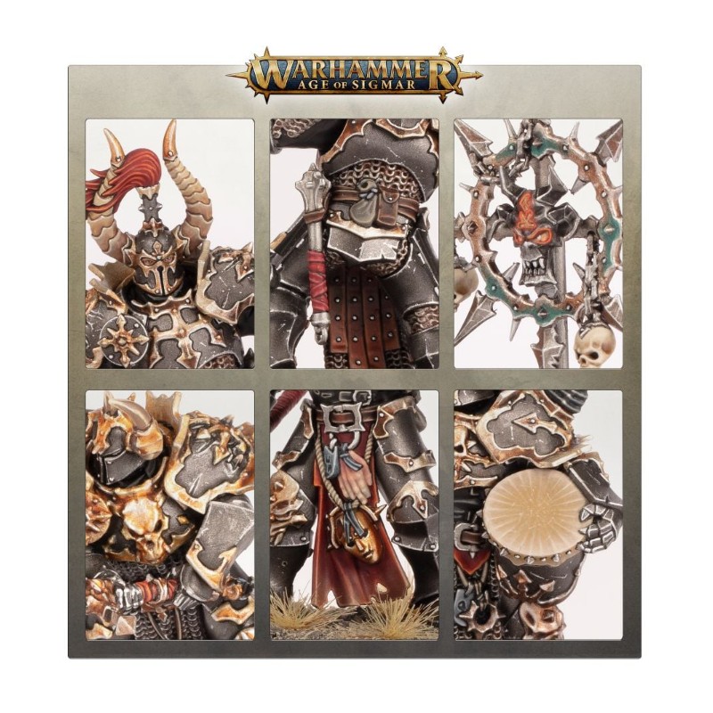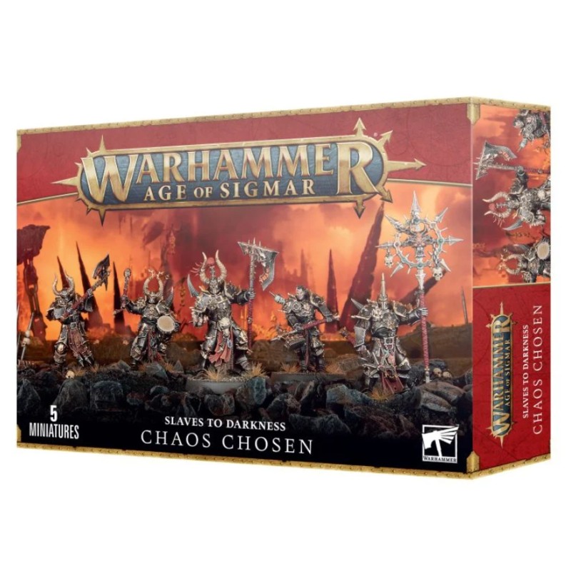Ce kit plastique permet d'assembler cinq Élus du Chaos, des guerriers endurcis pour les armées d'Esclaves des Ténèbres dans Warhammer Age of Sigmar. Chacun de ces combattants mortels est armé d'une fendeuse d'âmes, une arme à deux mains maudite prenant la forme d'un marteau, d'une hache, d'une masse ou d'une grande épée. Ils sont également engoncés dans une armure de plates ornementée. Une figurine peut être assemblée comme Champion Exalté, un comme Tambour-crâne et un autre comme Porte-icône avec soit un drapeau soit une étoile à huit branches. Le kit contient cinq autres symboles alternatifs pour dédier votre icône à Khorne, Slaanesh, Nurgle, Tzeentch ou au Chaos Universel. Les deux autres figurines peuvent être assemblées avec diverses options d'armes, et le kit contient huit têtes casquées et quatre nues pour vous permettre de personnaliser facilement vos Élus du Chaos.