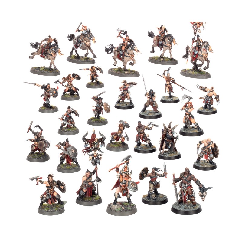 Ces figurines constituent une armée complète de Pillards Noir-serment pour disputer des parties de Fer de Lance à Warhammer Age of Sigmar – les règles de ce Fer de Lance sont disponibles en téléchargement gratuit sur le site internet Warhammer Community.