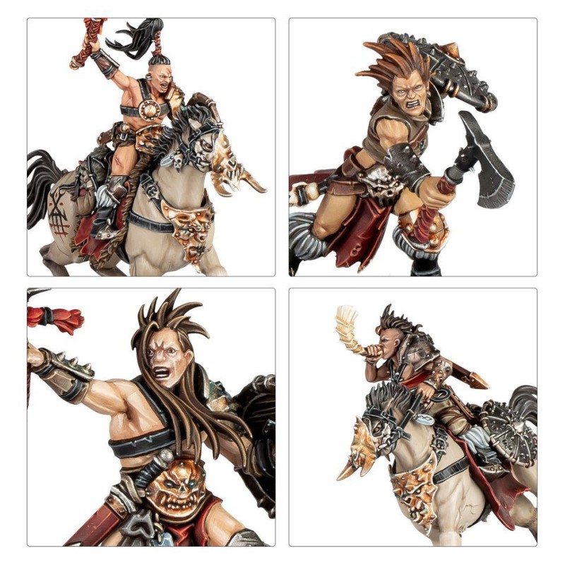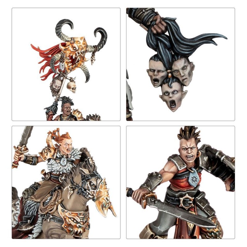 Ces troupes brutales et sauvages sont menées par une Reine de Guerre Noir-serment ayant véritablement gagné la faveur des Dieux Sombres. Derrière, la cavalerie redoutable des Cavaliers Cruels Noir-serment fonce tête en avant vers la mêlée, tandis même que les bandes barbares de Saccageurs Noir-serment et les impitoyables Maraudeurs Noir-serment cherchent à s'attirer les grâces de leurs divinités perverses.