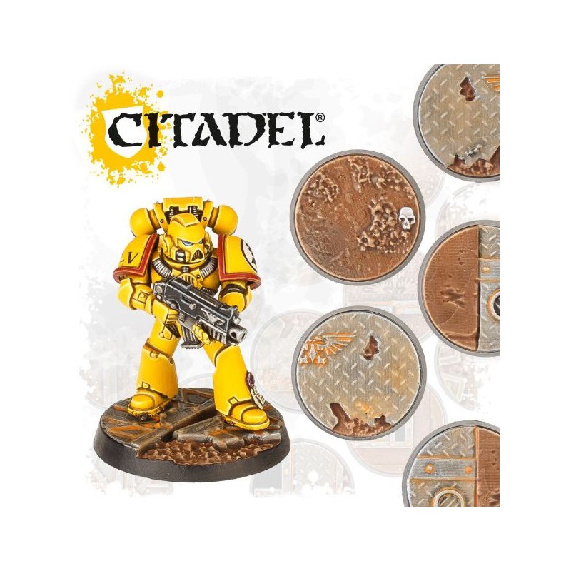 Vous recevrez 60 socles ronds texturés de 32mm, qui vous aideront à assortir votre armée au Sector Imperialis!
