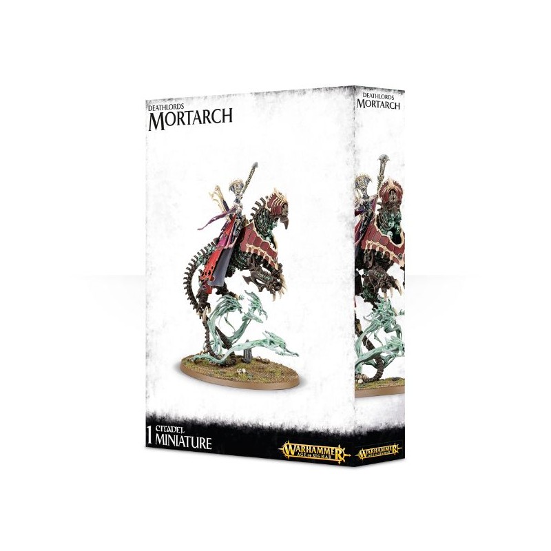 Description du produitCe kit plastique permet d'assembler Arkhan the Black, Mortarch of Sacrament. Il porte des armes forgées de la propre main de Nagash : Zefet-kar, la Lame Sépulcrale et Khenash-an, le Sceptre des Esprits, qui lui furent offerts à sa renaissance en tant que Roi Liche. Chevauchant le dread abyssal appelé Razarak, le Fléau des Traîtres, Arkhan régit les armées de Nagash en s'assurant que rien n'échappe à sa vigilance.