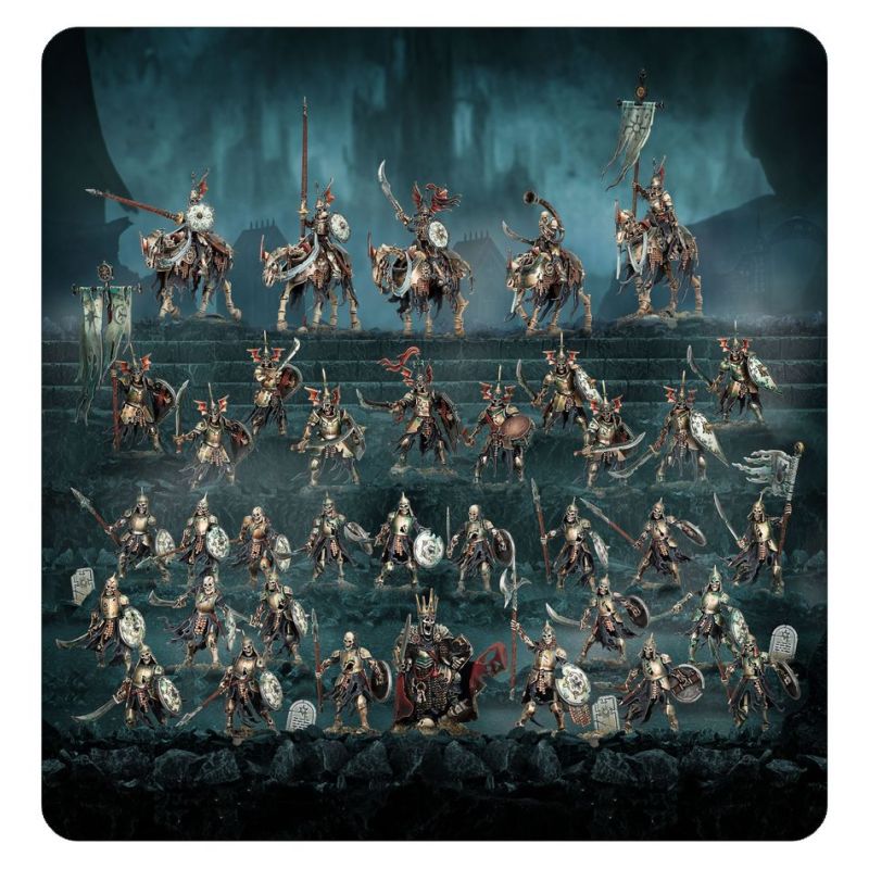 - Contient un Roi Revenant intimidant, sa loyale Garde des Tertres, des Chevaliers des Tertres et une grosse unité de Squelettes Raclemorts