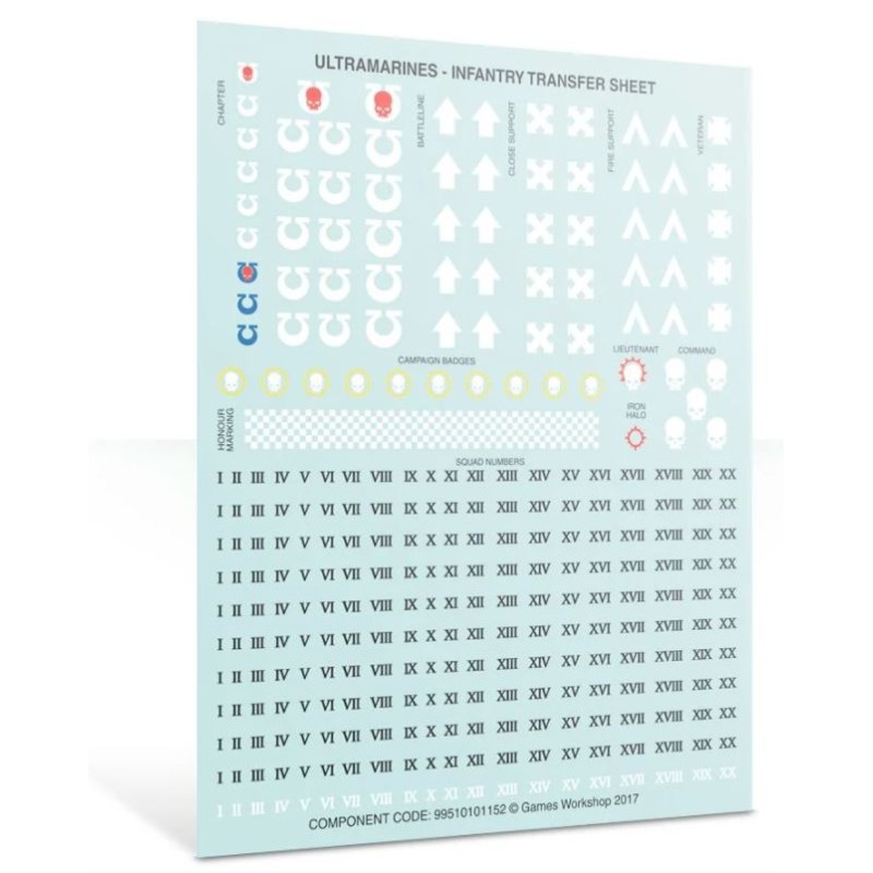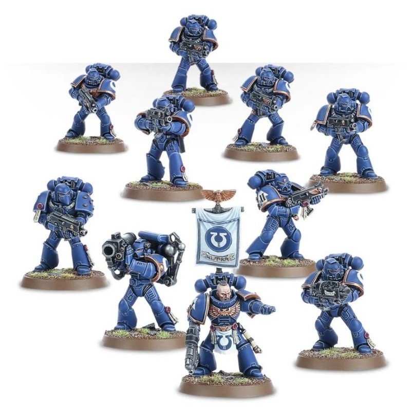 Ce kit plastique contient 179 pièces avec lesquelles assembler une Space Marine Tactical Squad de 10 membres (sans parler des échanges de pièces!). Il inclut également 2 planches de décalcomanies d'infanterie Ultramarines avec laquelle vous pourrez ajouter l'iconographie et les marquages d'escouade à vos figurines, et dix socles ronds Citadel de 32mm.