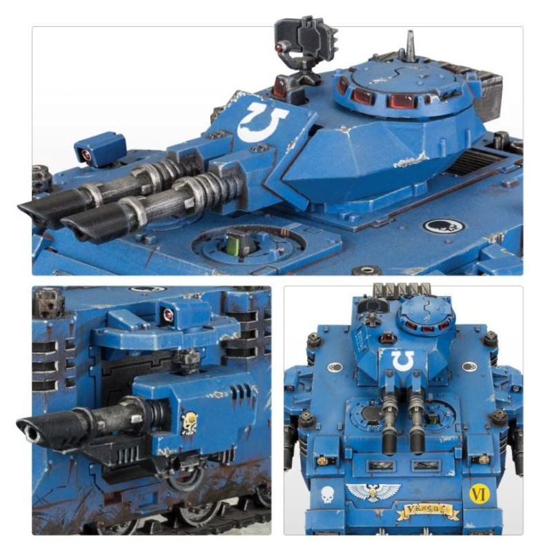 Dérivé du châssis du Rhino, le Predator sacrifie la capacité de transport au profit d'un blindage frontal plus épais et d'un armement lourd en tourelle. Grâce à ce kit, vous pouvez monter un Predator muni d'un autocanon en tourelle ou de canons laser jumelés en tourelle. Vous avez l'option d'ajouter des bolters lourds de flanc, ou des canons laser de flanc. Le kit propose aussi en option un bolter Storm sur pivot et un missile traqueur.