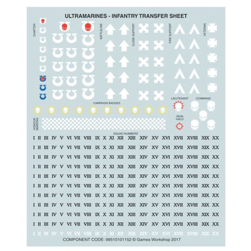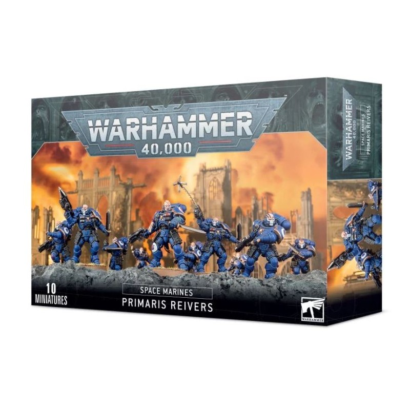 Les Primaris Reivers sont fournis en 228 composants, plus 10 socles ronds Citadel de 32mm et une planche de décalcomanies.