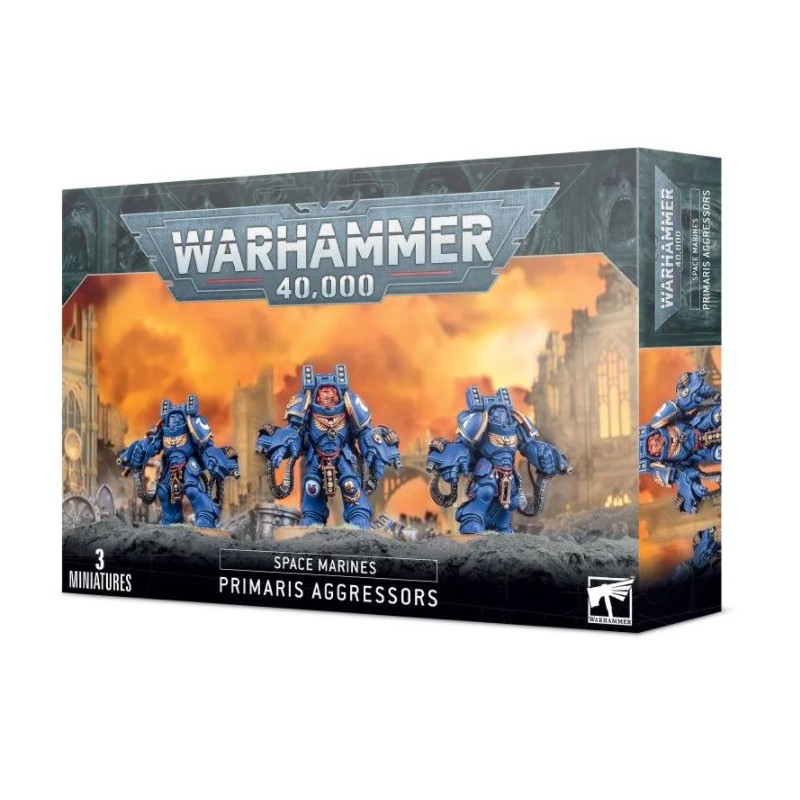 Description du produitCe kit plastique contient tous les composants nécessaires pour assembler une Primaris Aggressor Squad de trois membres. Leur armure extrêmement lourde rend leur silhouette plus large et trapue que celle d'autres Space Marines Primaris, ce qu'accentuent les gantelets Boltstorm automatiques ou Flamestorm. Il y en a trois paires de chaque, avec bandes ou tuyaus d'alimentation reliés à l'imposant paquetage dorsal. Une paire de gantelets Flamestorm a les tubes rétractés, comme pour frapper à coups de poings après avoir répandu les flammes… Si vous choisissez les gantelets Boltstorm, les Aggressors peuvent aussi prendre un lance-grenades Fragstorm.