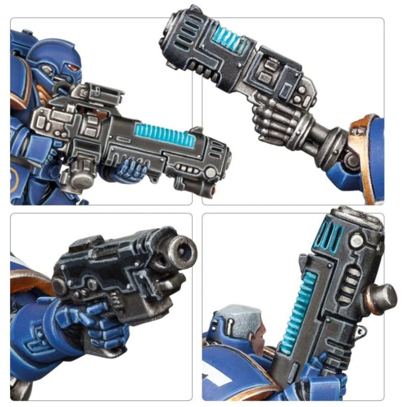 Le problème (que d'aucuns qualifieraient de bonus…) des armes à plasma est leur tendance à surchauffer, ce que reflètent plusieurs composants optionnels. Le Sergeant dispose de variantes de tête avec stigmates de brûlures, et les bras bioniques proposés évoquent les membres perdus dans des épanchements de plasma. Il y a en outre tout un éventail d'étuis de pistolets, de reliquaires, de grenades et de sceaux de pureté.