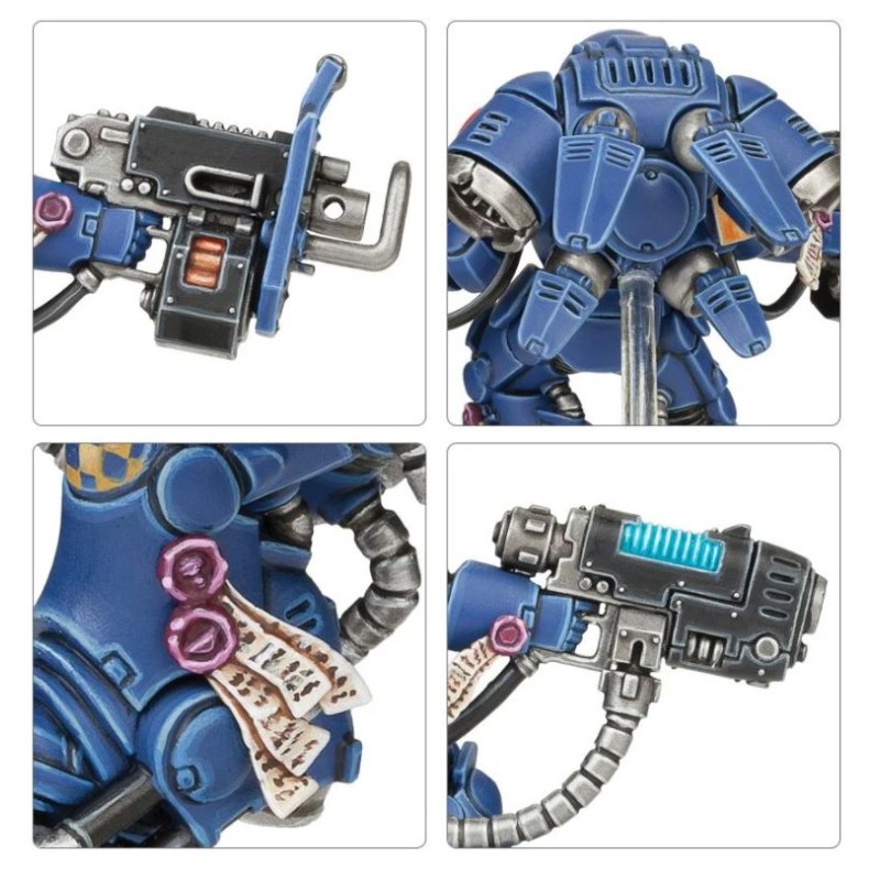 5 casques renforcés sont fournis, faits pour s'employer avec le bouclier thermique– pas de têtes nues chez cette unité! S'y ajoutent 3 casques renforcés, et 4 sceaux de pureté dont un double pour distinguer le sergent.