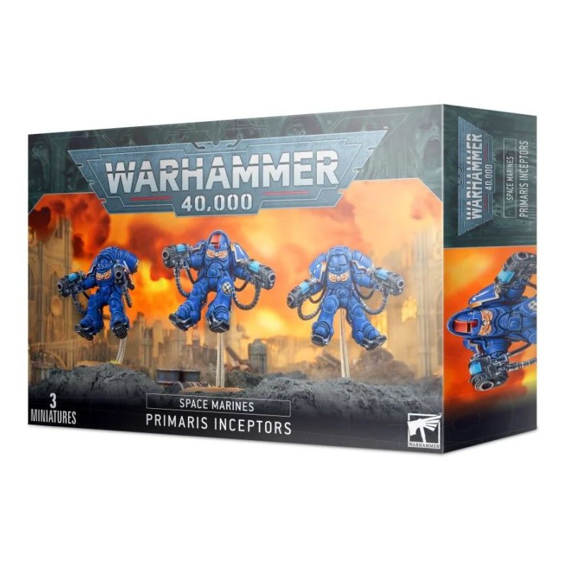 Description du produitCe kit plastique contient les composants nécessaires pour assembler 3 Primaris Inceptors. Revêtus d'armures énergétiques Mk X, ils ont une silhouette bien reconnaissable du fait de leurs réacteurs dorsaux lourds – des moteurs à forte poussée orientable permettant à un Space Marine de bondir sur l'adversaire à une vitesse étourdissante. Les figurines se distinguent par leurs réacteurs mais aussi par le bouclier thermique qui protègent la tête des Inceptors de la chaleur dégagée, avec des ailerons configurables, des amortisseurs adaptés aux bottes ainsi que des câbles et évents propres à ce kit. Les Inceptors peuvent être armés chacun de 2 exterminateurs à plasma ou de 2 bolters d'assaut – les exterminateurs à plasma ont un carénage contre la chaleur et les 2 bolters d'assaut ont des boîtiers-chargeurs caractéristiques