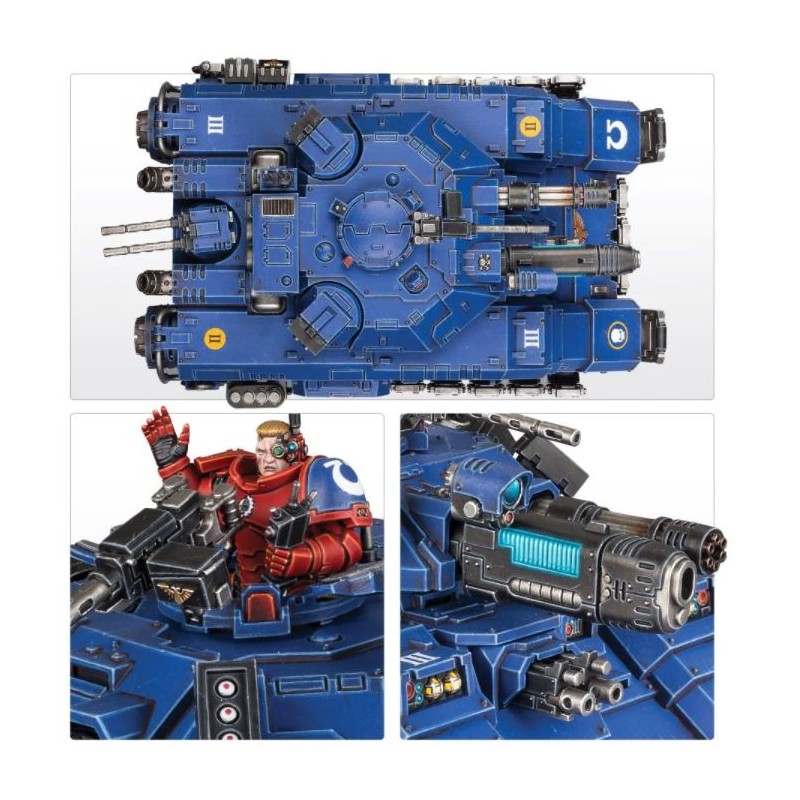 - Un char de première ligne lourdement blindé pour les Space Marines, avec en tourelle une arme principale dévastatrice